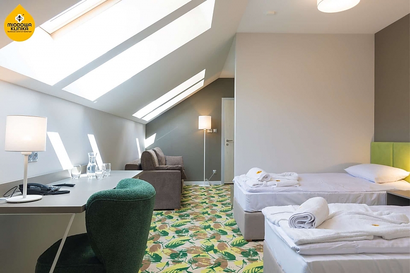 Miodowa Klinika oferuje nowoczesną i komfortową bazę noclegową dla maksymalnie 50 osób.