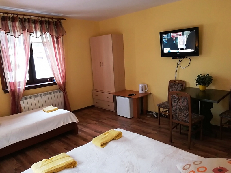 Oddajemy do Państwa dyspozycji pokoje 2,3, 4 osobowe wyposażone w TV i łazienką oraz do dyspozycji kuchnia z jadalnia